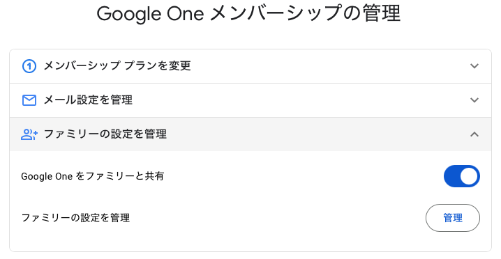 確認したところ、ここの「Google Oneをファミリーと共有」がONになっていれば、ファミリーアカウントでもPROが利用可能になっていました!