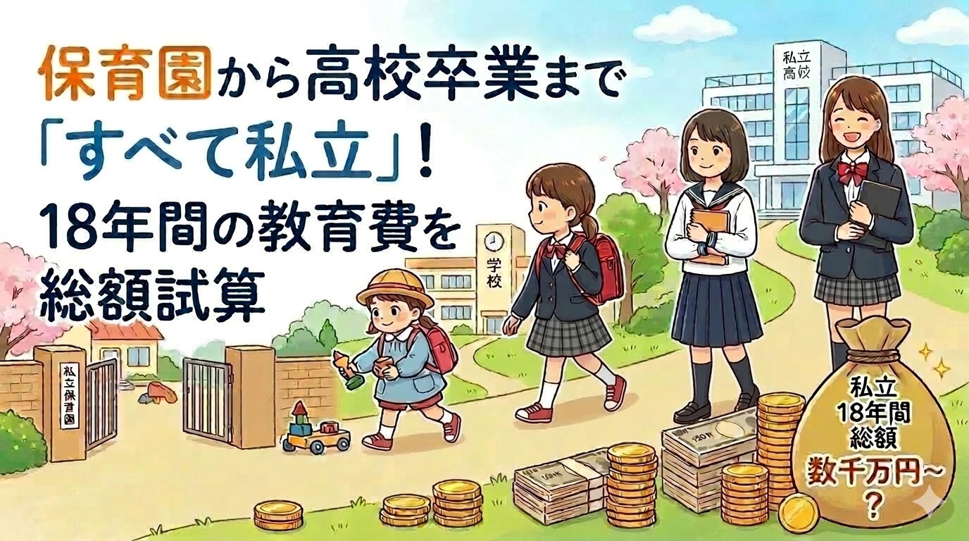 中学校を卒業した際に教育費を計算していたので、高校を卒業したこのタイミングで改めて東京23区内で保育園から高校までをすべて私立で通わせた場合の費用を算出してみました。