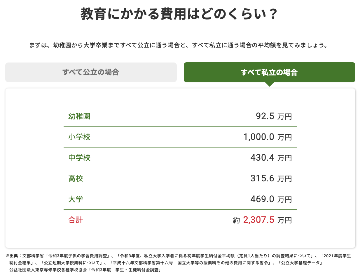 大学どころか、高校までで既に3,000万円弱に達していました!