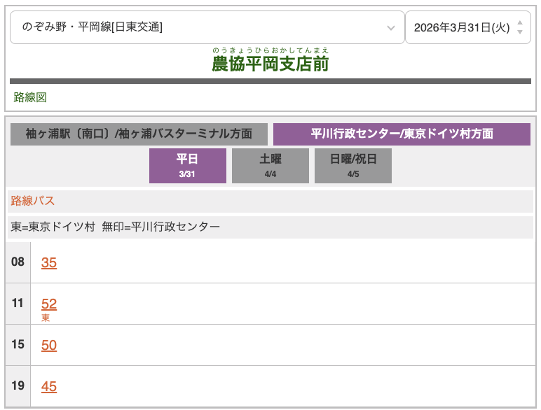 なんと1日4本。15時50分の次は19時45分までありません。。。。都バスの本数に慣れていると、これは衝撃的。