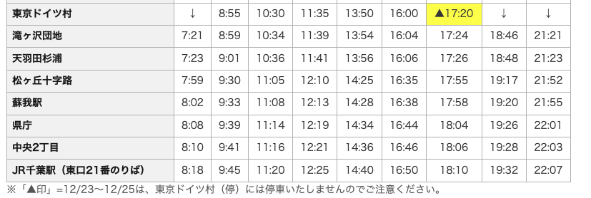 このように、最初に帰りの足を確保して、それから東京ドイツ村へ行くのです。