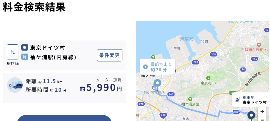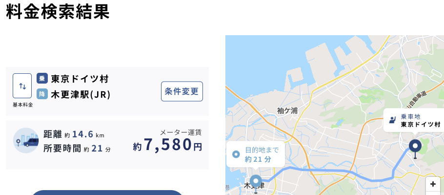 袖ケ浦駅まで6,000円。高速バスに乗り換えられる木更津駅だと、