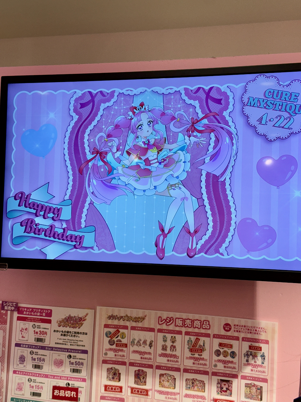 装飾ではありませんが、店内のモニターも今日はキュアミスティック仕様!