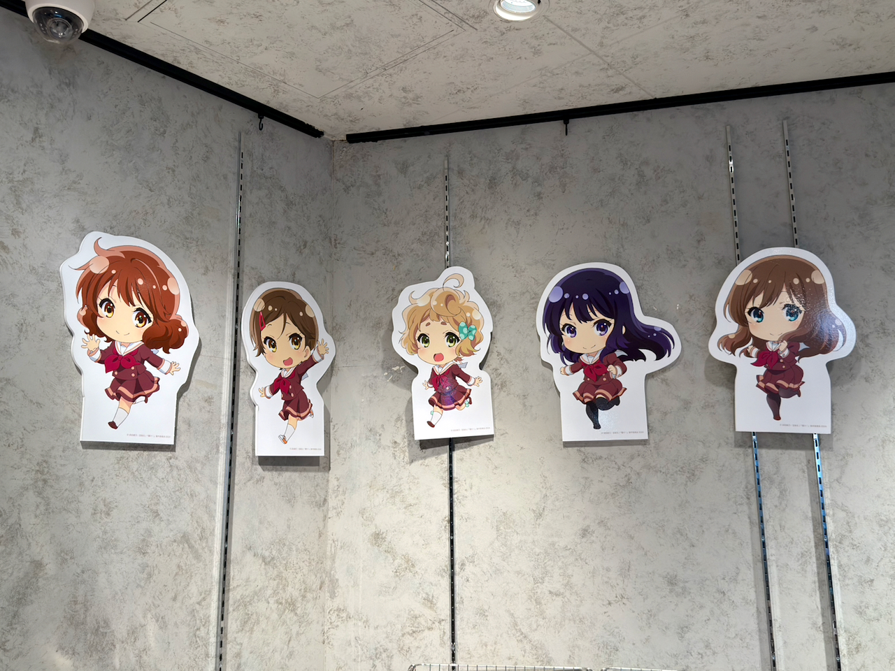 グッズコーナーの天井近くには、SDキャラの5人が! これはスイパラのコラボカフェと同じかな??と思ったけれど、ブログを見返してみたら違いましたw